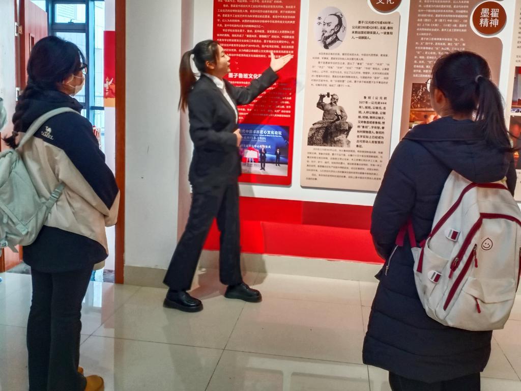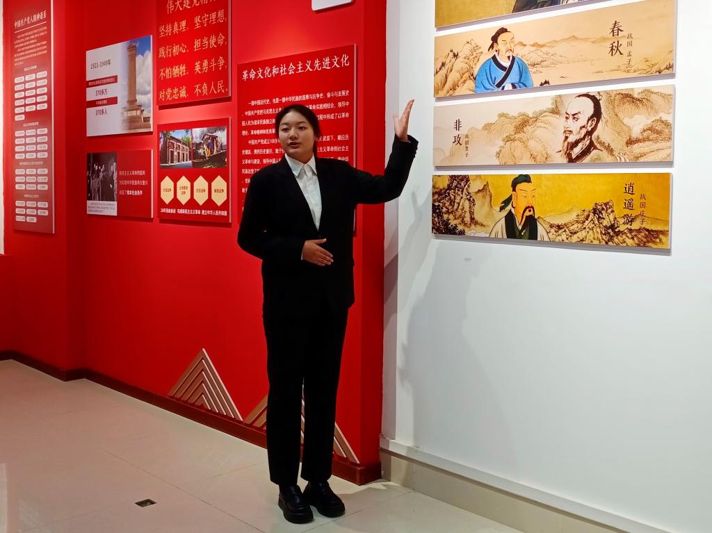 为贯彻学习习近平新时代中国特色社会主义思想和党的二十大精神,弘扬红色文化,加强学生爱国主义教育和革命历史教育,11月30日上午,我院于崇德楼三楼组织2023级学生参观文化自信与课程思政教学实践中心。