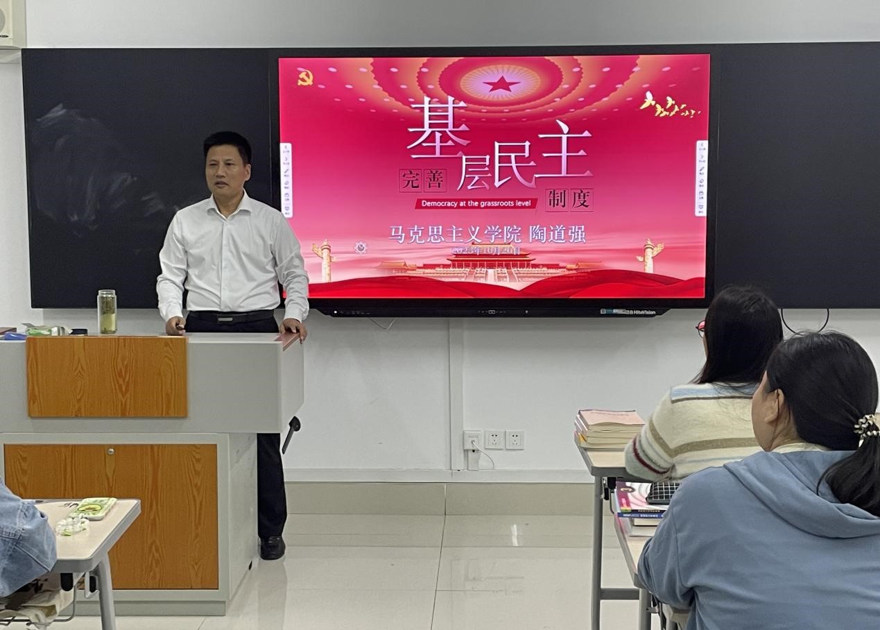 陶道强从我国基层民主制度的发展历程、我国基层民主建设与发展现状、我国基层民主建设的发展展望三个方面对完善基层民主制度进行了详细讲述。他强调,基层民主是直接、有效、有活力的民主,分析了基层民主建设发展的难题并指出党的领导在基层民主制度建设中得到了充分体现。最后他激励全体入党积极分子要坚定不移跟党走、学好本领强自我、创新创业展身手,做好新时代中国特色社会主义事业建设者和接班人。