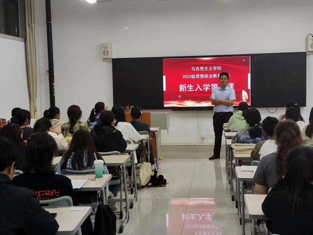 陶院长对2023级新同学的到来表示欢迎,介绍了学院的办学历史和发展情况。结合自身从教经历,对思想政治教育专业的培养方案和专业课程设置进行了详细讲解。我院思想政治教育(师范)专业底蕴深厚、特色鲜明,具有强烈的政治性和思想性,人才培养方案紧贴时代理念和社会需要,设计合理,目标明确,能够有效帮助同学们规划学业和职业选择意向,引导学生树立专业意识、潜心向学。