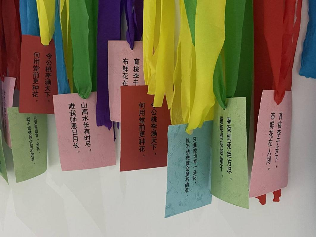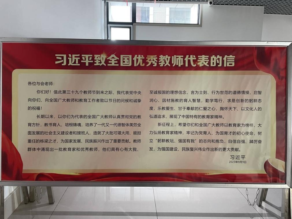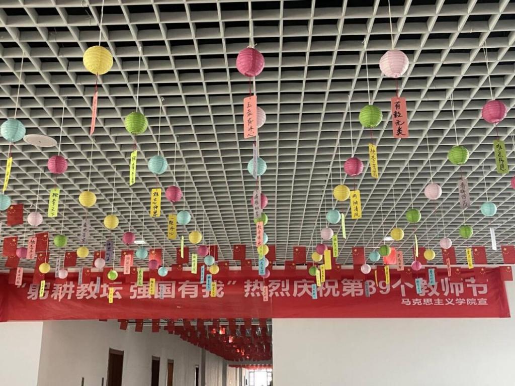 我院开展了“躬耕教坛,强国有我”主题系列活动。学生以朗诵的形式,在教师节表达了对老师诚挚的祝福。一轮美好,持与你好,同学们通过用卡片记录的方式,以笔传情,将自己对老师们的祝福和感激汇集在文字里,凝结在飘扬的彩带中。同时通过开展教师座谈会等活动,倾听教师们的心声,教职工们回顾总结了自己的教学历程、感悟及对今后的职业规划,并对下一步教学工作提出许多具有建设性的意见。“衷心祝愿老师们开心快乐,幸福常在!”学院的学生们为老师们录制祝福视频,记录最美师生情。老师们纷纷表示,今后要以更饱满的精神状态投入到工作中,将个人发展融入学校事业发展大局。
