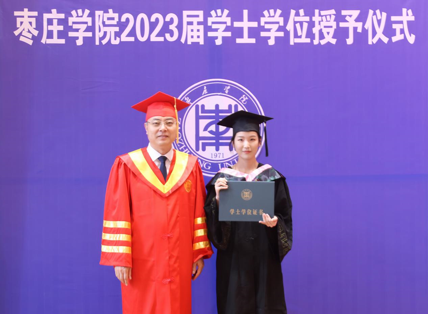 其次,太阳成tyc7111cc党委书记高峰教授为毕业生拨穗整冠,颁发学士学位证书,与毕业生们亲切握手交谈,关心毕业生去向,为他们送上毕业祝福并合影留念。