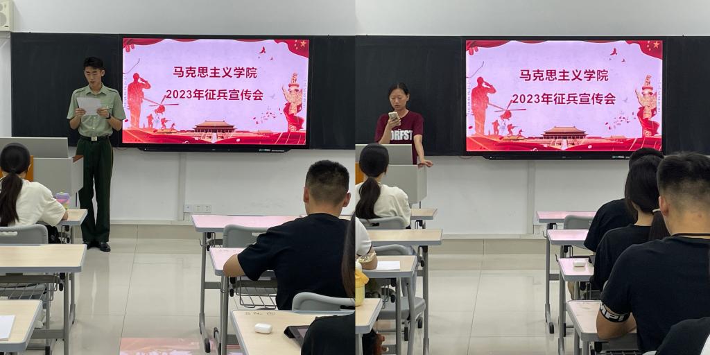 为全面贯彻落实习近平强军思想,增强国防意识,鼓励青年学生积极投身国防建设,6月14日晚,我院于豁然楼A113教室举办2023年征兵宣讲会。