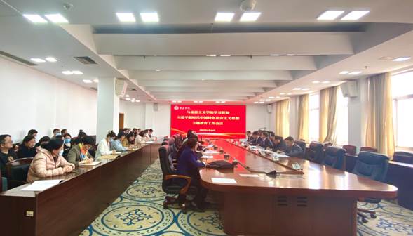 张昌林指出,这次主题教育不划阶段、不分环节,时间紧、任务重、要求高,要紧密结合学院工作实际,扎实推进理论学习、调查研究、高质量发展、检视整改和建章立制等重点任务。要充分发挥马院的主阵地主渠道作用,加强组织领导,广大思政课老师要加强理论武装,要在“先、全、深、实”上下功夫,扎实推进“三进”工作,要把领导带头贯穿始终、问题导向效果导向贯穿始终、宣传引导贯穿始终、实干导向贯穿始终。要做好结合文章,将主题教育与党的二十大精神学习贯彻结合起来、与推动示范马院建设和学院内涵式发展结合起来,统筹推进,有序实施,以高质量发展的成果体现主题教育的成效。