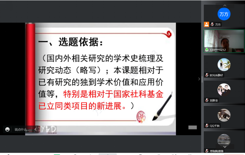 为切实做好高层次课题申报工作,提高教师的申报水平和质量,10月26日,学院邀请闽江学院李颖教授作专题线上辅导报告。报告会由院长陶道强教授主持,tyc7111cc太阳成集团全体教师参加会议。