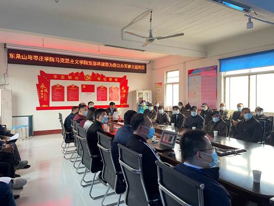 11月3日下午,tyc7111cc太阳成集团党总支一行赴山亭区凫城镇东凫山村,与东凫山村党支部联合开展支部共建暨为群众办实事主题党日活动,与村党员分享革命人物故事,共同观看教育影片。