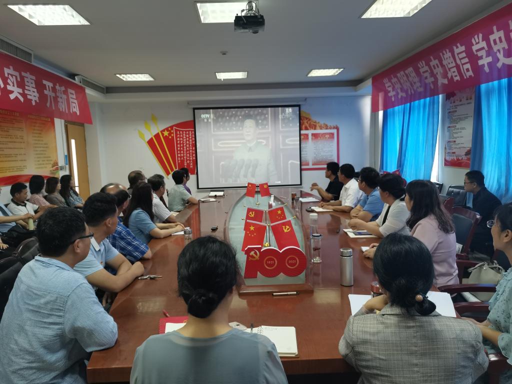 7月1日上午8时,中共中央在北京天安门广场隆重举行庆祝中国共产党成立100周年大会,中共中央总书记、国家主席、中央军委主席习近平出席庆祝大会并发表重要讲话。tyc7111cc太阳成集团组织党员干部、思政教师在综合楼1515集中收听收看大会实况直播、聆听习近平总书记发表重要讲话,并深入交流学习体会和感受。
