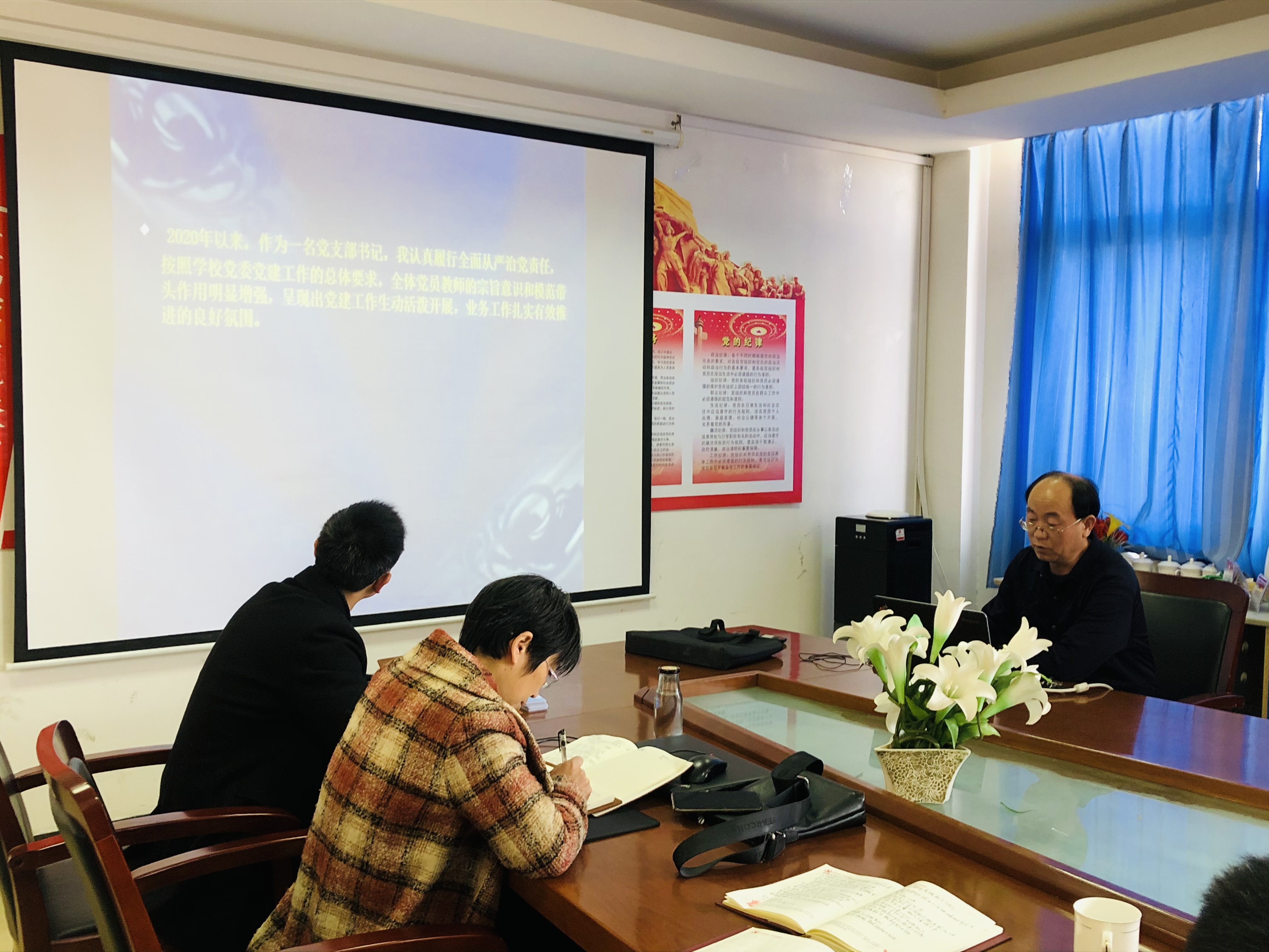 3月3日下午,tyc7111cc太阳成集团党总支在综合楼1515党员活动室召开2020年度党支部书记履行全面从严治党责任和抓基层党建述职评议会议。党总支副书记汪涛主持会议。党总支全体成员、党支部书记、党员代表参加会议。