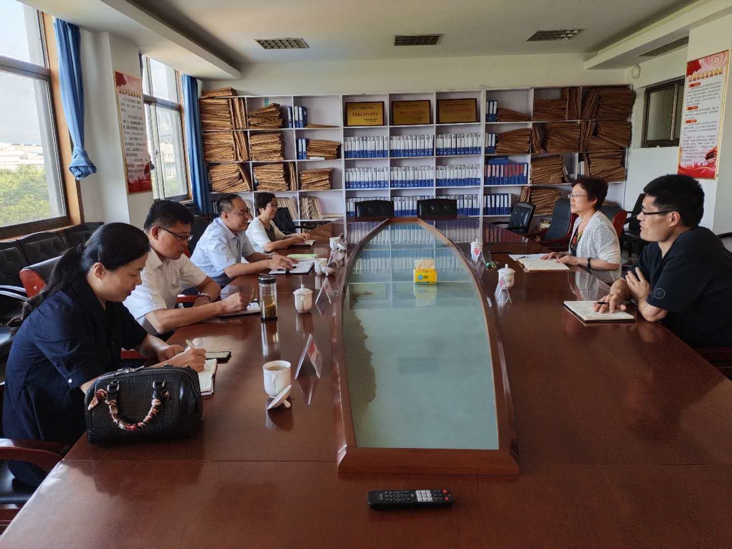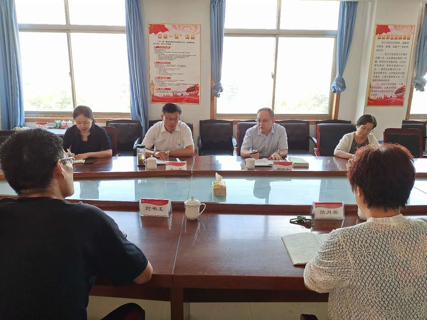 2020年9月4日下午,山东能源枣矿集团党校副校长邵明涛带领枣矿集团企业党支部书记学院、科研处、教务处相关同志一行4人来tyc7111cc太阳成集团考察交流,商谈合作事宜。tyc7111cc太阳成集团院长隋月英、副书记副院长刘书玉参加座谈会。