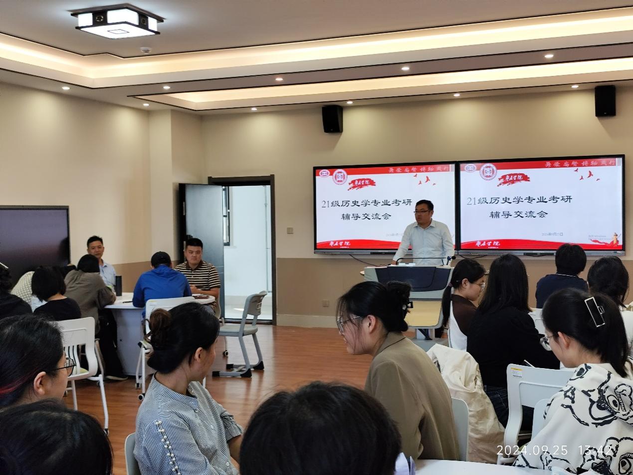 为进一步帮助2025届考研学生通晓研情、科学备考,了解学生复习准备情况,9月25日下午,历史学教研室于文化影像体验实验室召开2021级历史学专业考研辅导交流会。历史学专业教研室代表教师、2021级考研学生参加交流会。