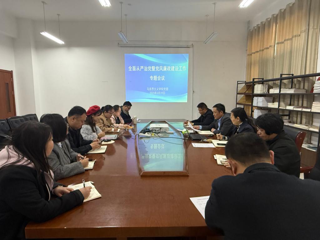 3月19日下午,我院在豁然楼A315会议室召开2025年从严治党暨党风廉政建设专题会议,学院党委委员及各教研室主任参加会议,党委书记仝锡文主持会议。