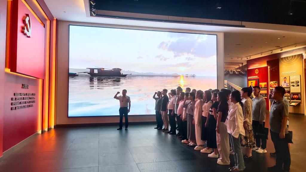 在南湖革命纪念馆,通过文物展品、场景复原、多媒体演示等多种形式,系统回顾了中国共产党从诞生到发展壮大的光辉历程,深刻领会“红船精神”作为中国革命精神之源的核心内涵。在宣誓广场,全体教师面向党旗重温入党誓词,坚定理想信念。红船讲堂上,专家讲授的初心使命主题党课,让教师们进一步明确了思政课教师的责任担当,大家围绕“红船精神如何融入课堂”交流教学心得,凝聚育人共识。