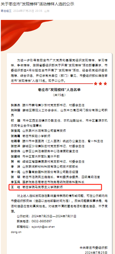 王壮:枣庄市“发现榜样”人选