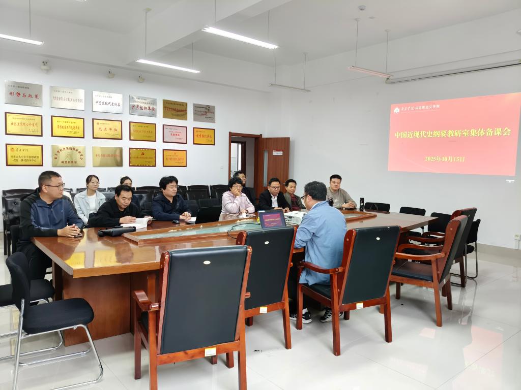 为推进中华优秀传统文化、革命文化深入思政课堂,充分发挥思政课立德树人关键课程作用,10月15日下午,中国近现代史纲要教研室在学院A315会议室召开集体备课会,会议由教研室主任夏洋主持,教研室全体教师参加。