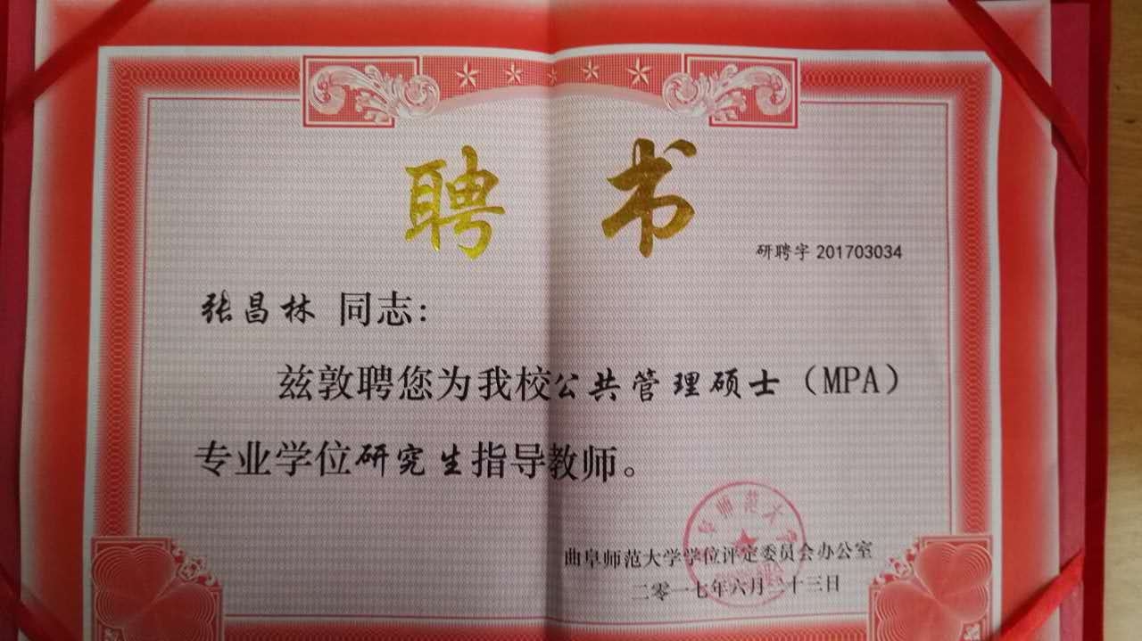 张昌林孙佩锋老师获聘曲阜师范大学兼职硕士生导师