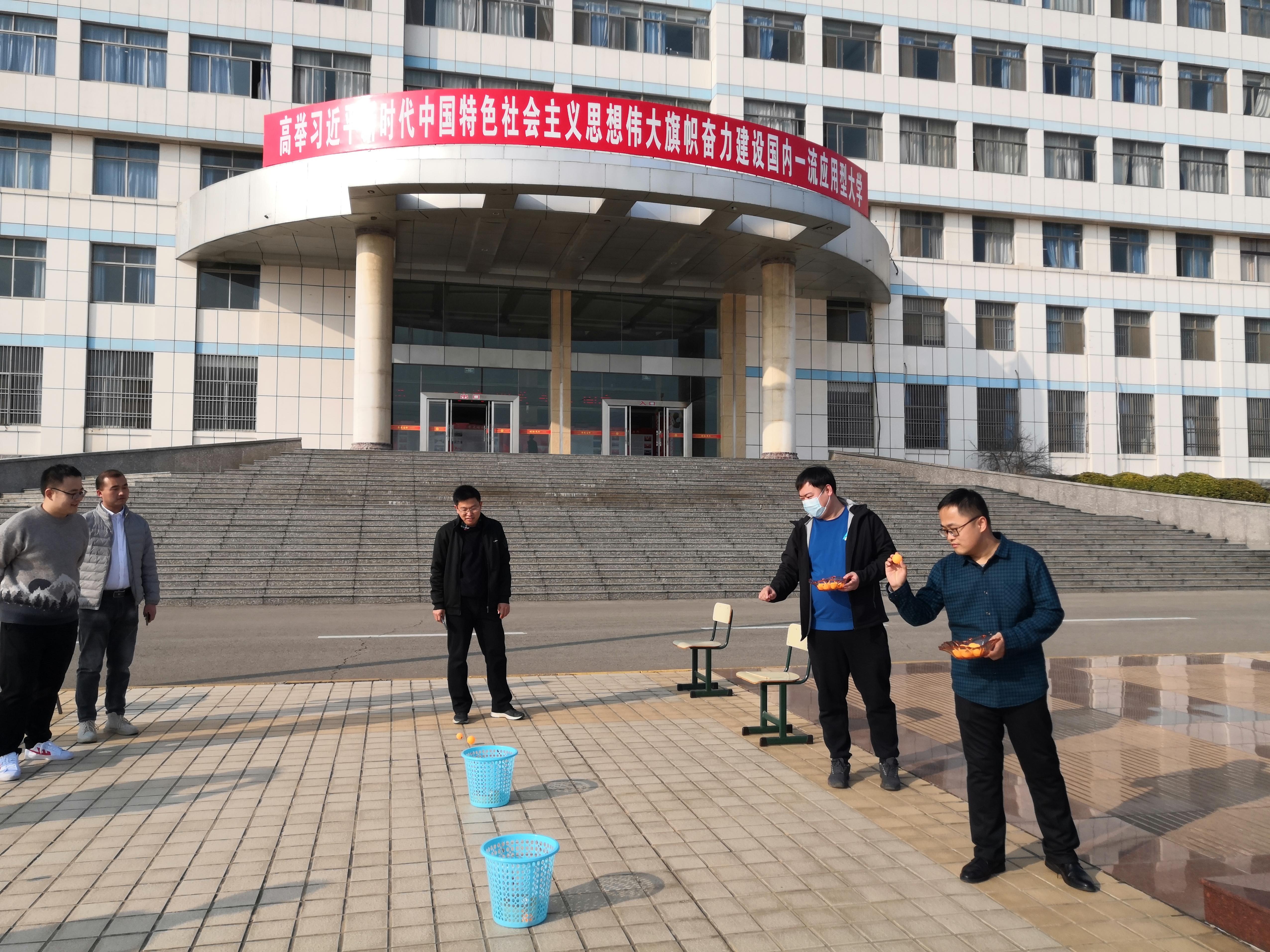 3月10日下午,全体教职工参加了综合楼前小广场上举办的趣味运动会。运动项目包括一分钟跳绳、一分钟踢毽子、夹乒乓球往返跑、乒乓球掷准等,项目趣味盎然,活动精彩纷呈。教职工欢歌笑语、生机勃勃。