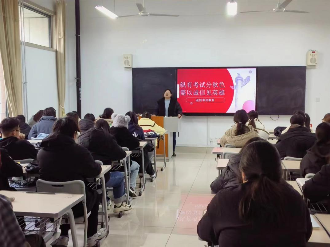 班会中,辅导员老师首先强调了诚信考试的重要性:“诚信是大学生应有的道德品质。我们要以实际行动践行诚信,坚持公平竞争,坚定慎独自律,坚决对作弊等乱纪行为说不,维护考场公平秩序。”然后向同学们分享备考经验、时间管理方法以及如何在考试中保持诚信等方面的知识,鼓励同学们在复习过程中,能够制定合理的复习计划,合理安排复习时间,掌握重要的知识点,熟悉主要内容,提高复习效果,凭借自身实力考出优异的成绩。