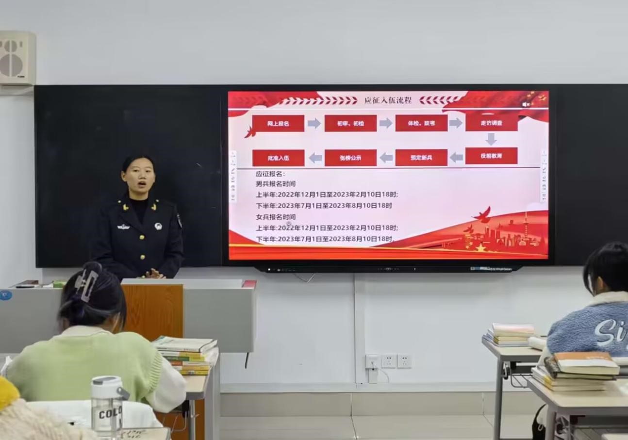 一直以来,学院高度重视国防教育和应征入伍工作。通过聆听此次宣讲会,同学们对军营生活和大学生应征入伍政策有了更多的了解,进一步增强了国防意识。并且推动我院之后的国防教育工作顺利开展。同学们表示要将爱国主义作为人生底色,继承革命先烈遗志,矢志不渝为国防事业贡献力量。