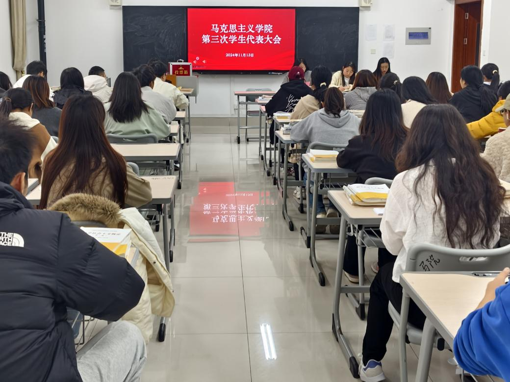 为进一步推进学院民主管理,加强学生组织建设,保证我院学生工作平稳有序进行。11月13日下午,我院在豁然楼A316召开第三次学生代表大会。院团委书记张璐、辅导员王梦圆出席会议,各班级学生代表参加会议。