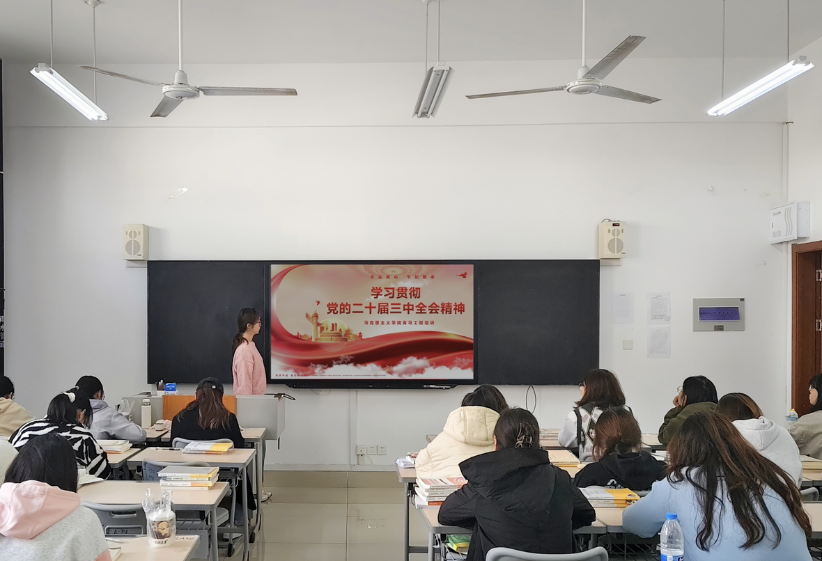 为培养信仰坚定、能力突出、素质优良、作风过硬的青年马克思主义者,进一步推动党的事业薪火相传,11月6日,tyc7111cc太阳成集团在豁然楼A316室举办了主题为“学习贯彻党的二十届三中全会精神”的青马工程培训。