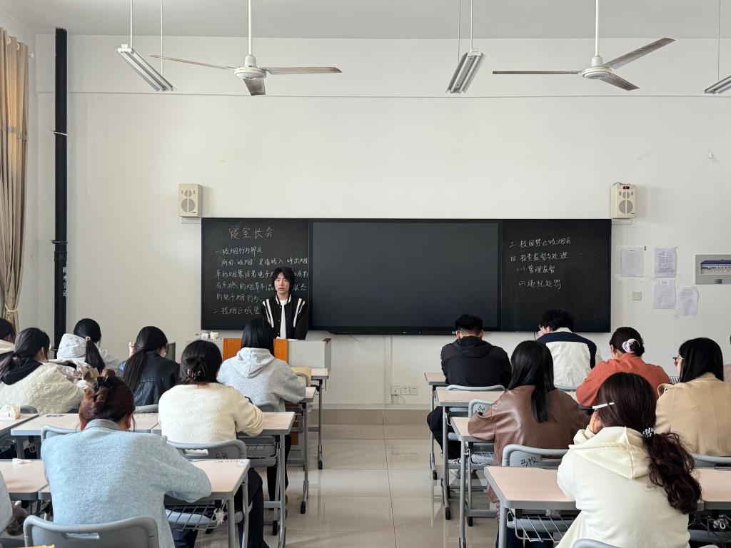此次会议进一步明晰了寝室长的控烟职责,不仅深化了同学们对校园控烟规定的认知、强化了健康安全意识,还凝聚了无烟宿舍建设共识,为我院打造文明健康的校园宿舍环境奠定了坚实基础。