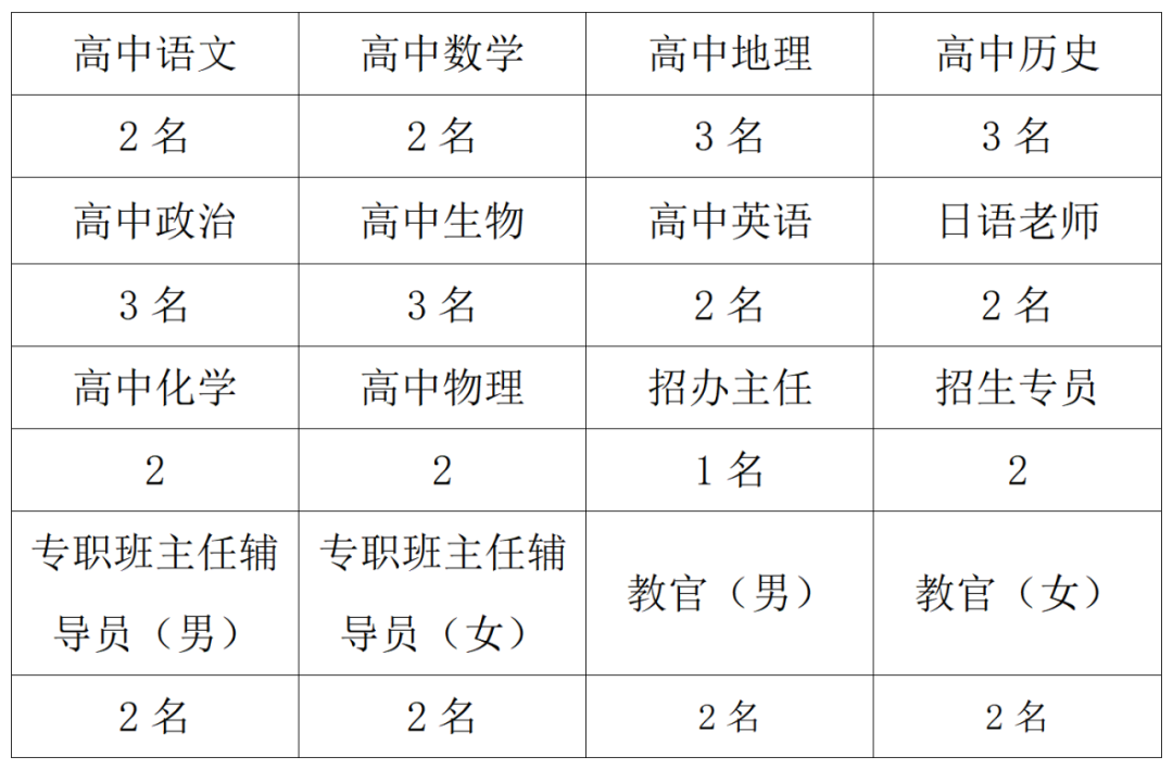 3.教师岗:能胜任高中相应学科教学任务及班主任工作