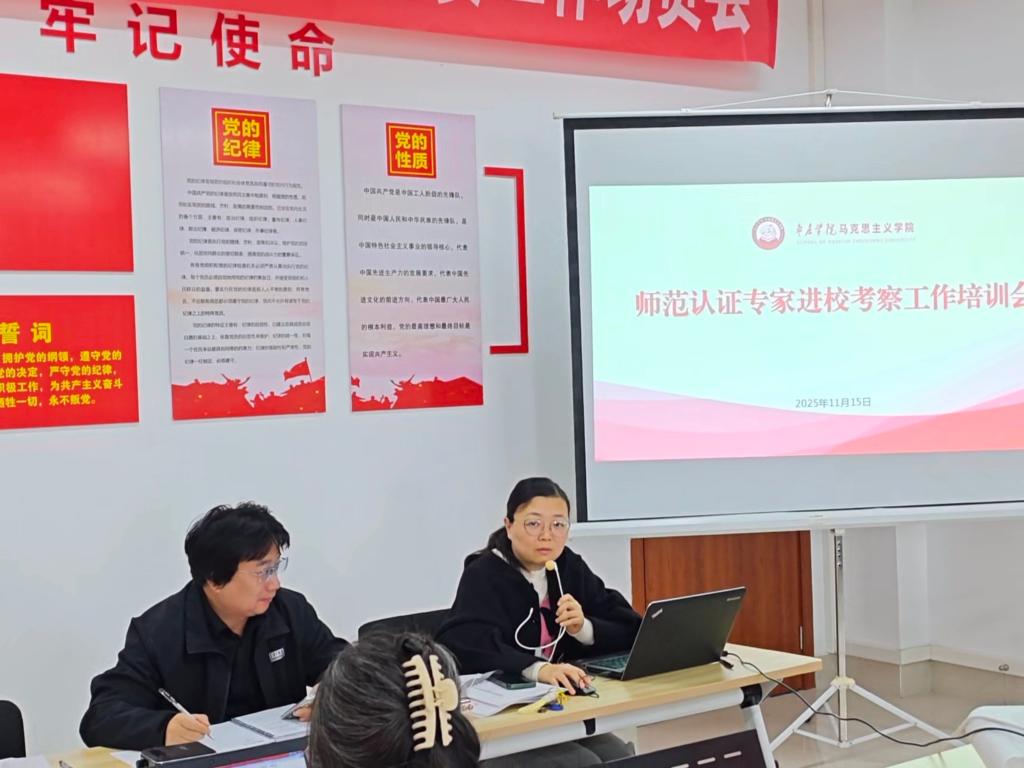 为全面提升思想政治教育专业人才培养质量,以高标准、严要求迎接教育部专家组进校考察,11月5日,学院在豁然楼B317会议室召开思想政治教育专业师范认证专家进校考察培训会。会议由院长董嫱嫱主持,思政专业全体教师参加。