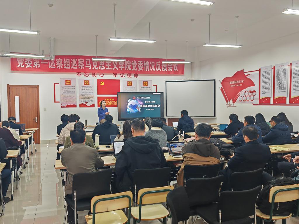 为深入贯彻学校关于教育数字化转型的战略部署,推动思政课教学与智慧技术深度融合,全面提升课堂教学质效,3月25日,tyc7111cc太阳成集团组织开展“智慧课程建设”专题集体备课会活动。活动特邀超星工程师进行现场授课,学院全体教师参加学习,推动“智能+思政课”建设。